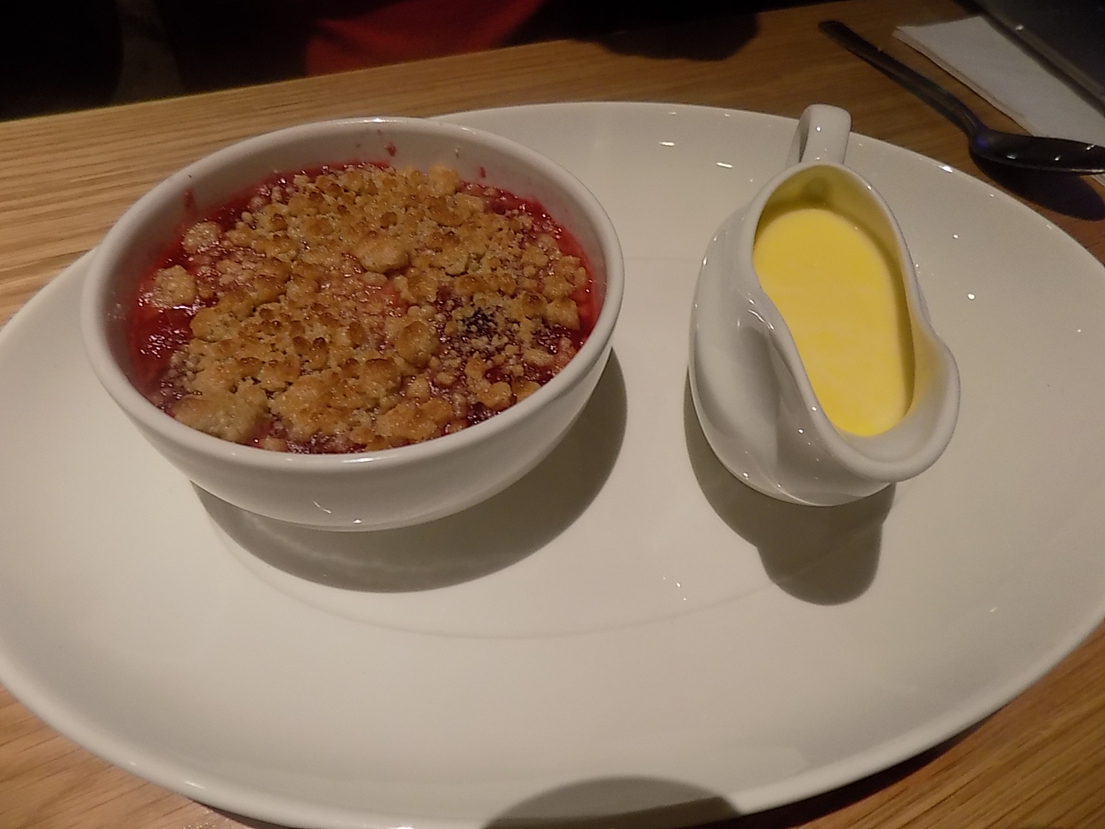 Pete is definitely a pud rather than dessert kind of guy, and so the signature cherry and apple crumble, complete with custard was always going to be his first choice. It was delicious, with the sweet cherries and apple combining to make a scrumptious sweet treat.