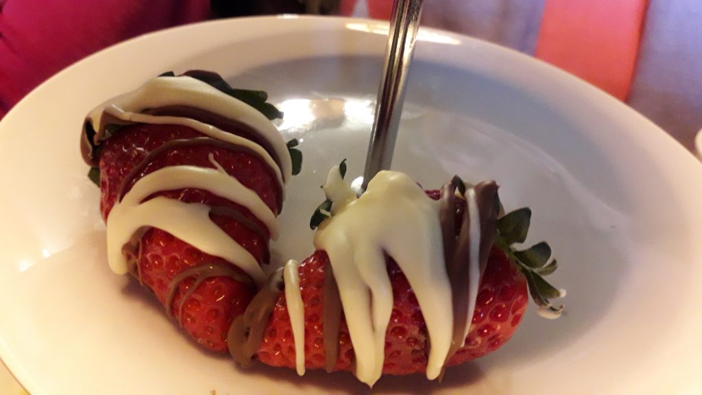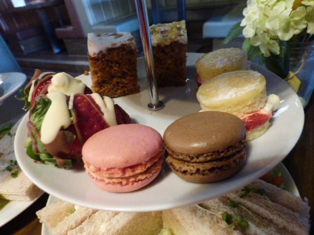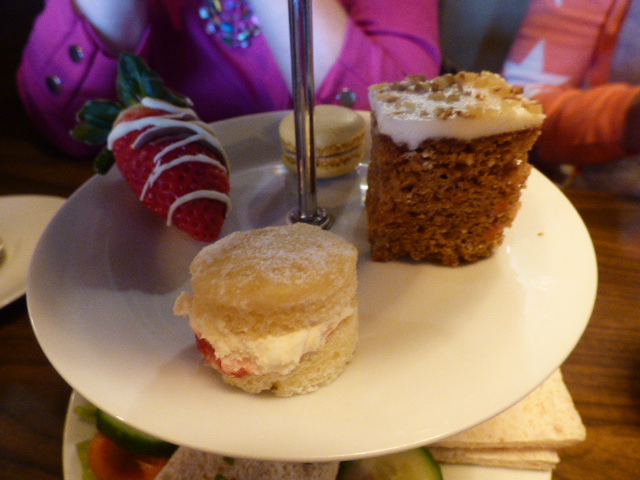 But the real test of an afternoon tea are the sweet treats. Pirlo’s has delicious macarons, mini Victoria Sponges, Carrot Cake and white chocolate covered strawberries. The strawberries were a definite high point, large and juicy and covered with thick chocolate – I could have easily eaten more of these, and in fact swapped my carrot cake for an extra strawberry (do they count as one of my five a day I wonder?). I was also a fan of the mini Victoria Sponge, my favourite cake in a cute miniature version was a real treat.