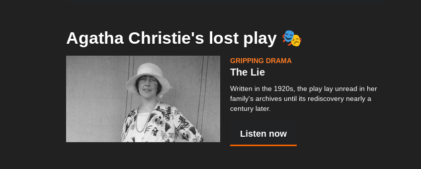 Sometime in the mid 1920’s, long before the heady days of ‘And then there were none‘ and ‘The Mousetrap‘, Agatha Christie wrote her first play. It was called ‘The Lie’, and it was far more in the strain of Mary Westmacott than the Queen of Crime. It was also more than a little autobiographical.
