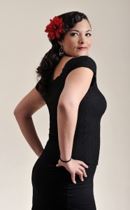 Caro has a stunning hourglass figure that she dresses to its best advantage by pouring it into outfits that reflect 50s styling. The red dress she wore on Strictly was a clear example of this, clinging to her curves in a way that made her look like a screen goddess from the golden age of Hollywood. With vampish red lips and a Billie Holiday like flower in her hair,she was 100% glamour, totally Hollywood. I just adored this look and wanted to see more.