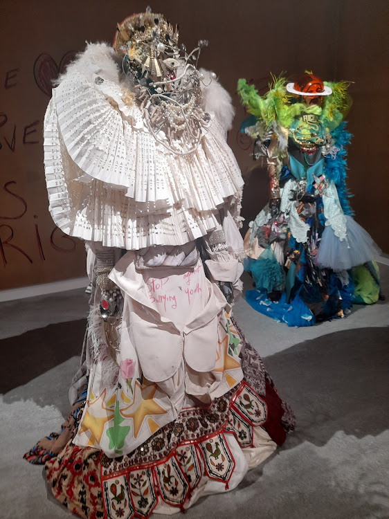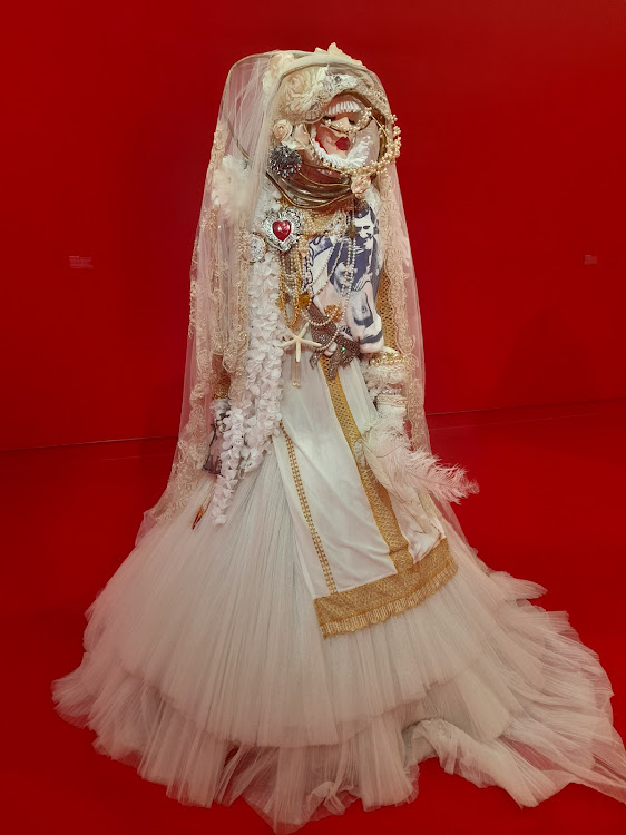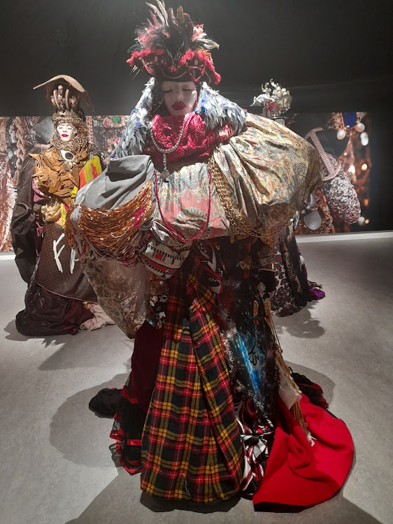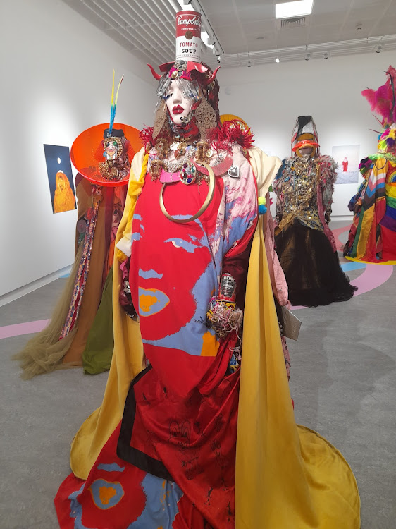 The collection is split over many rooms, with one of the instillations taking inspiration from the Terracotta Army, whilst other rooms have theatrical designs, or work inspired heavily by Pop Art and Andy Warhol. As an activist, the LGBT flag is inspiration for another model, whilst Charles and Diana, Kate Moss, Boy George and Marilyn Monroe all take their place in different guises.