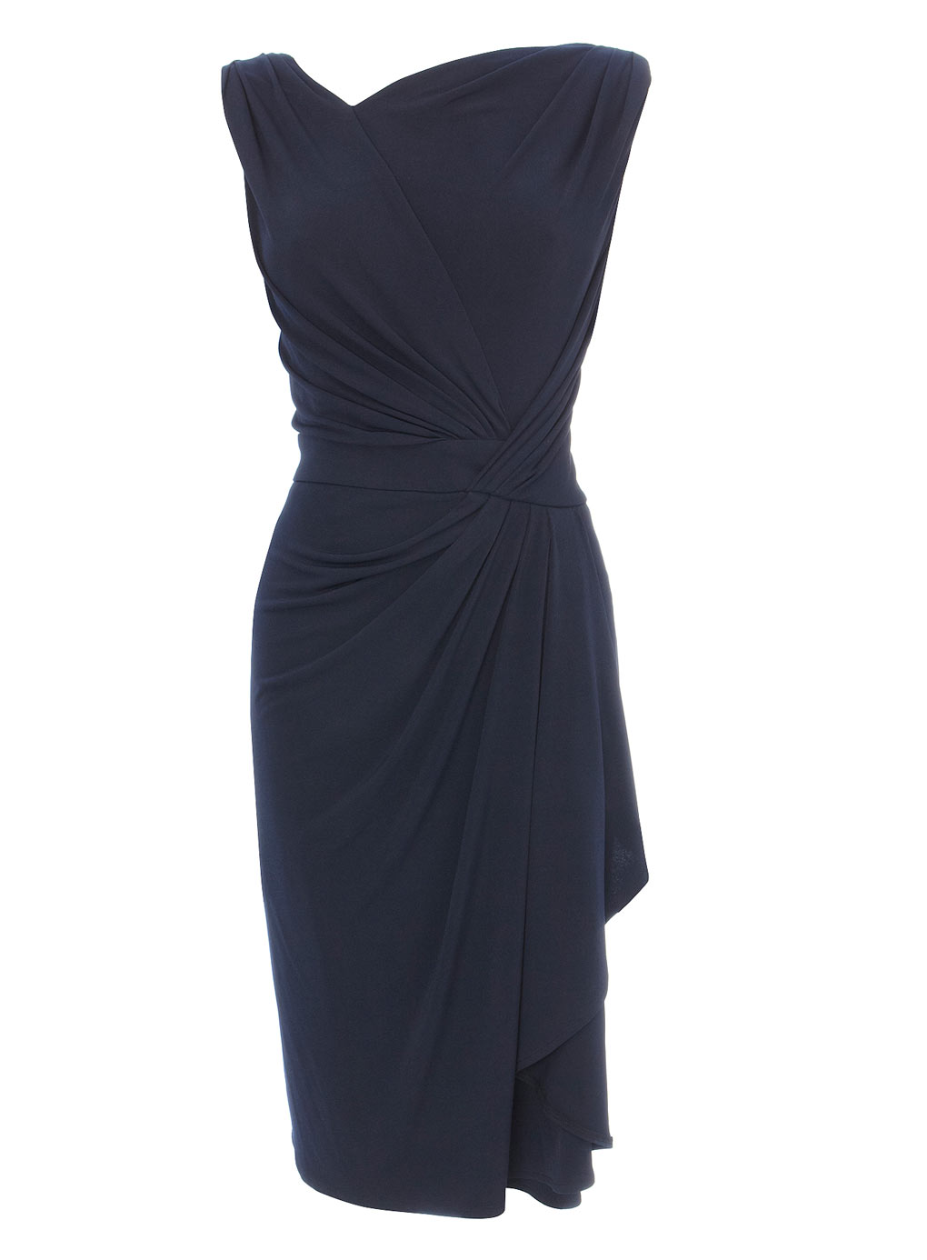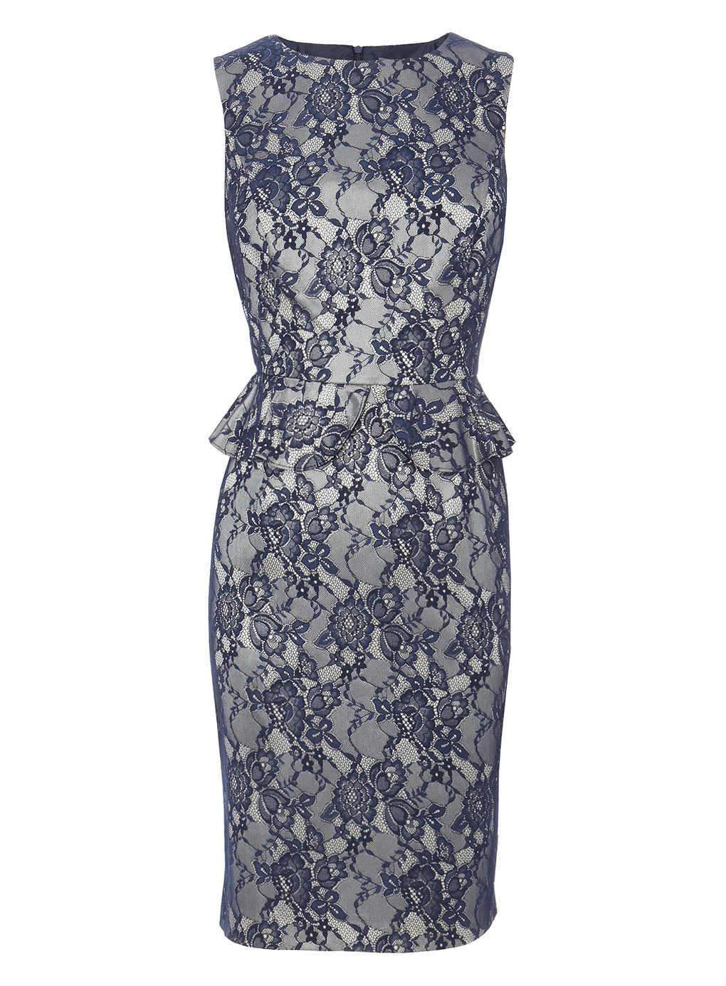 The dresses are lovely, with designs that could suit a variety of body shapes (they come in sizes 8-22). My favourite is the navy side wrap dress that I think is the perfect dress for curvier ladies, with draping and a wrap shape to accentuate those curves. The one shoulder floral print dress has a watered silk print that is the perfect dress for a summer wedding, whilst all after dark events are covered with the silver embellished cocktail dress. Finally the collection is completed with the Erdem – esque, Middlton style lace peplum dress, which has a flash of disco silver that makes this a great day to evening dress.