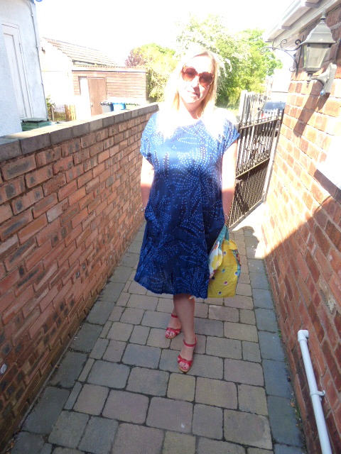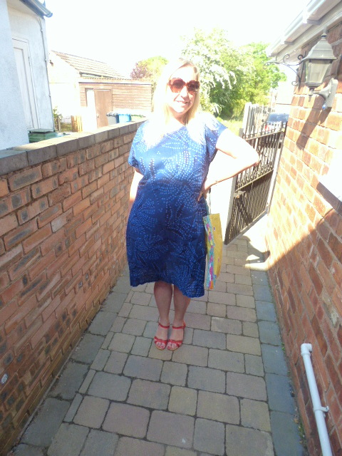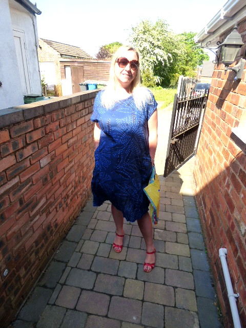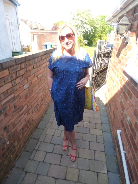 The dress I am wearing here totally illustrates this point. This is the Monsun eco-cotton dress which has a loose flowing style and, hurrah! is a dress with pockets. This dress is a dream to wear as it is in a very thin cotton, but it is not see-thru, as some cotton dresses tend to be. The fabric has a slight pleat to it, and a wonderful floral pattern that reminds me of aboriginal art.