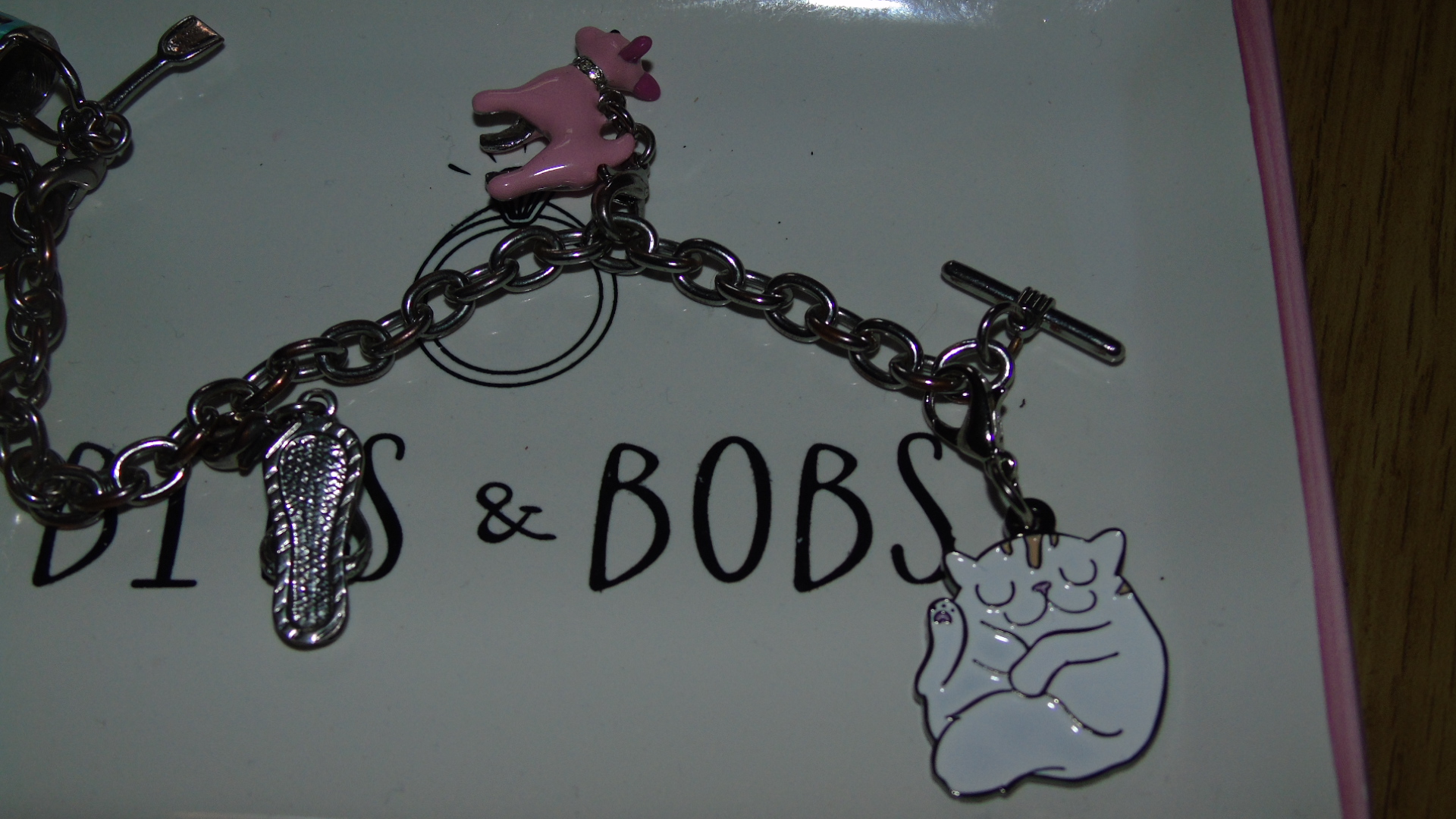 One of my passions when it comes to jewellery are charm bracelets. I think this comes from both my mom and nan, who I can distinctly remember wearing heavy silver varieties when I was a child. I loved to examine all the charms in detail, and remember that my faves were a silver churn that opened, and a crown that had a purple amethyst stone in the centre. As an adult I am still a fan, and have both a Wizard of Oz and Alice in Wonderland themed bracelet, as well as a charity one designed for Wallis many years ago, and a Pandora bracelet. But my favourite is probably my Bombay Duck version which is full of enamel charms, and now has a lovely new addition.