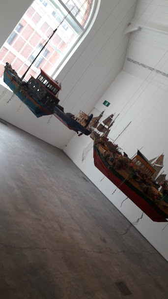 Hew Locke’s work is inspired and often features Guyana, the birthplace of his parents, and where he spent most of his formative years. Boats and ships are another motif that feature a lot, Hew had travelled to Guyana from Britain as a five year old, and then came back as a young man, and he is fascinated by the way that ships can transport things across the sea, both for good and bad.