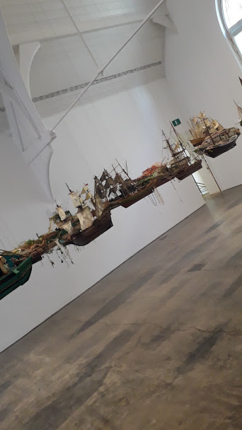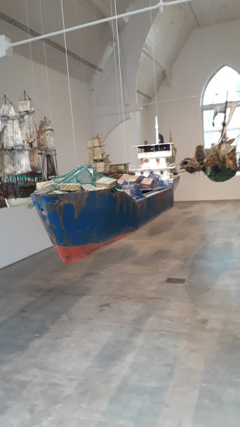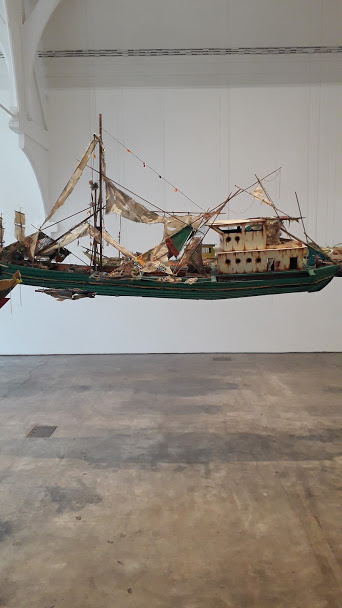 Hew Locke’s work is inspired and often features Guyana, the birthplace of his parents, and where he spent most of his formative years. Boats and ships are another motif that feature a lot, Hew had travelled to Guyana from Britain as a five year old, and then came back as a young man, and he is fascinated by the way that ships can transport things across the sea, both for good and bad.