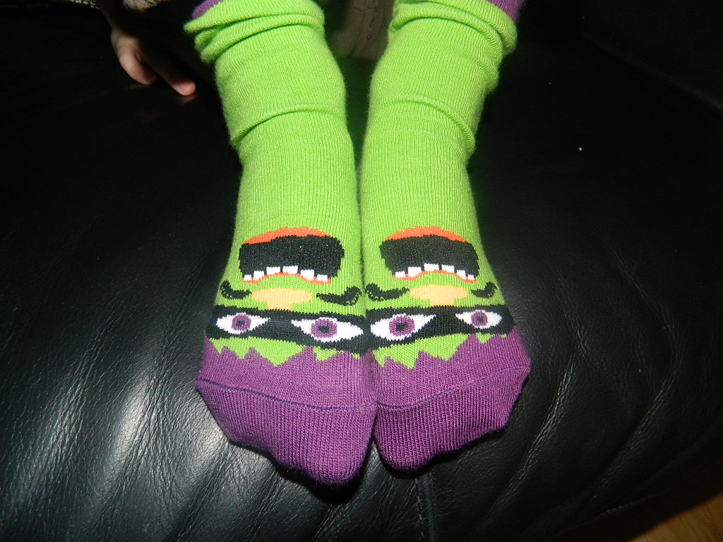 DSCN6599[1]Joe loved his design, they were bright, very eye-catching and funny, and he couldn’t wait to wear them for school on Sports Relief day so he could show the to his friends. The fit was perfect (Joe had the largest child size designed for 4-7 year olds (UK 9-12), and the elastication around the ankle/leg was just right – not too tight so that it would dig into the leg. These socks have since been washed and have retained the lovely bright colour that makes them such a great option for children.