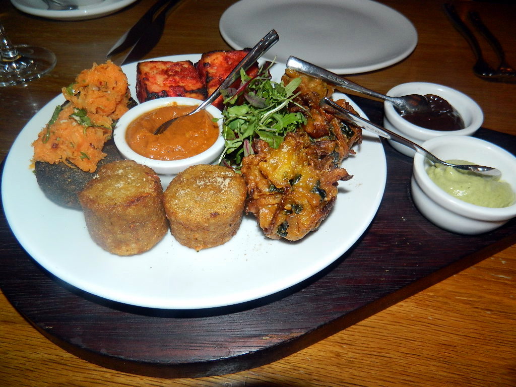 My sister and I are both spinach lovers, and often go for the vegetarian option on a menu, we were also keen to try paneer, so we opted to share a vegetarian platter which consisted of sweetcorn fritters, Onion bhajis, Potato cakes, marinated Paneer cubes and, our personal favourite, a spinach pakora. All were delicious, the paneer had been marinated in a tomato sauce and had a slightly toasty taste that I loved. The Potato tikki was also exquisite, with a taste of spice that was flavoursome rather than overpowering. Everything had me smiling and nodding in delight, there was nothing that made me reach for the water.