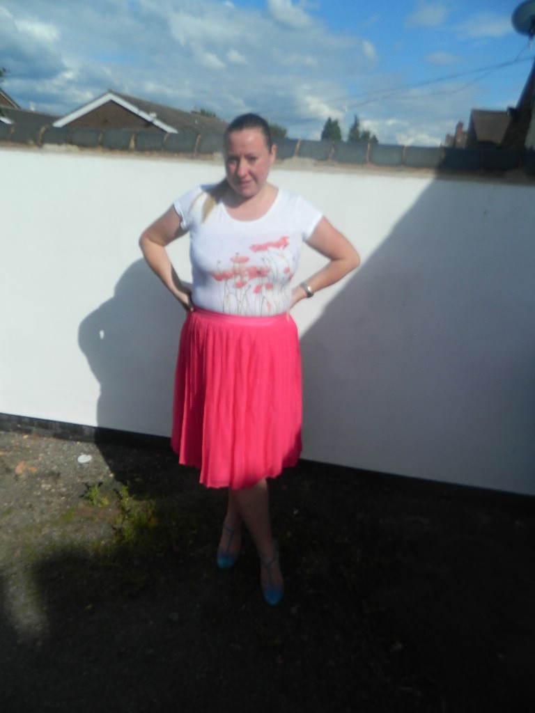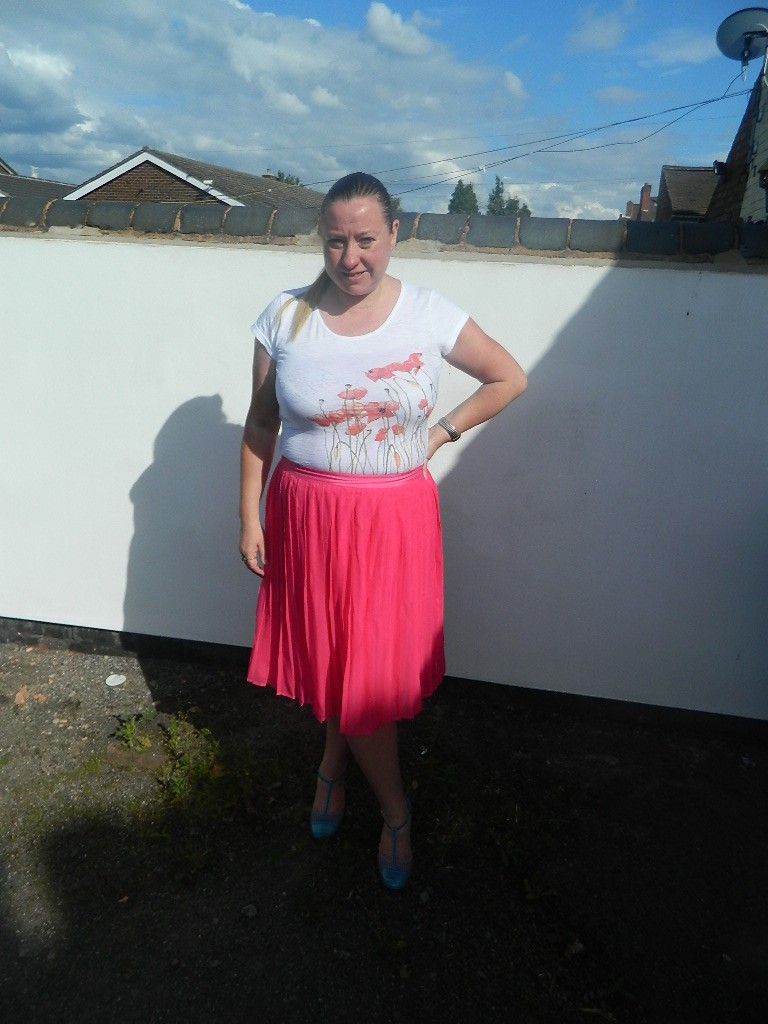 I chose to style my t-shirt in an ultra feminine way, with a pleated chiffonskirt from Very and pink and turquoise shoes from Kurt Geiger. But this top would also look fabulous with cut-off jeans and a kimono jacket for a summer festival, or with jeans and a blazer for drinks at a bar. It is versatile, and the lovely soft cotton means it is a great option for warm days.