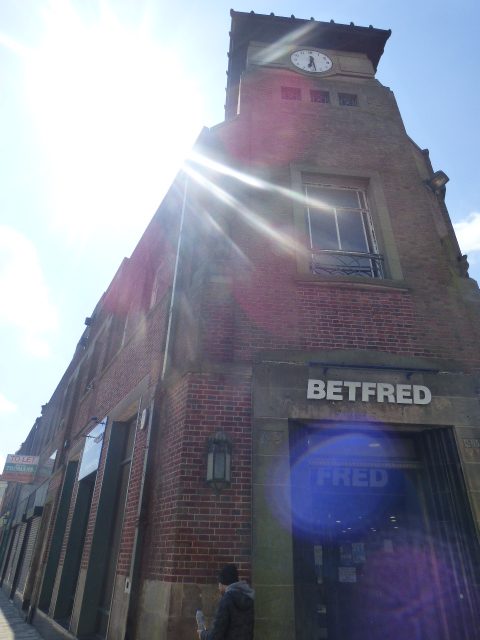 As you can see, these pictures were taken on a beautifully sunny day, hence the glare on what is a stunning building. Now known as the Betfred building, this elegant design from 1933 is the former headquarters of the Staffordshire Building society. Again it has been locally listed, and is definitely worth a second look, having lots of period features from the 1930s and occupying a unique shape that makes it almost church like in its design.