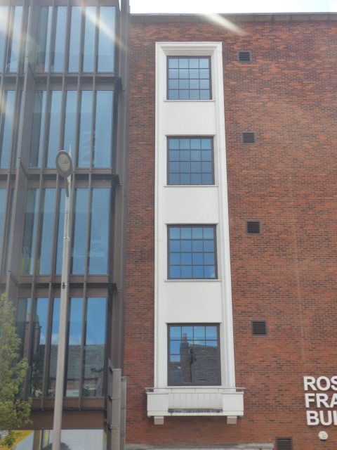The Rosalind Franklin building at the University of Wolverhampton is a great example of how modern architecture can be tied in with an art deco period building to create a new and exciting design. The 1930’s deco building has been used to create an entrance building for the new science block, retaining its lovely windows and doorway.