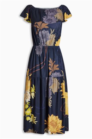 I like the navy floral bardot midi dress. Its cute and I love how it’s made to fit.
