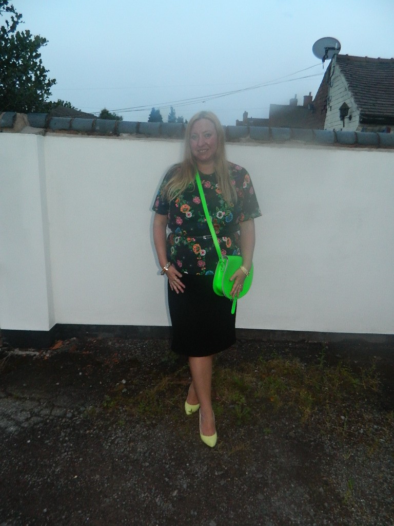 I totally fell in love with the stunning print of this top, especially the neon accents, which I think make it a little more edgy than your usual floral print. This is a shape I’m quite comfortable with, and, although this is a style I think would look great with jeans, I loved the way it had been styled on the website, with a pencil skirt, so I decided to try my own version of this look.