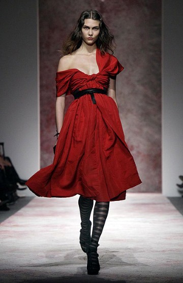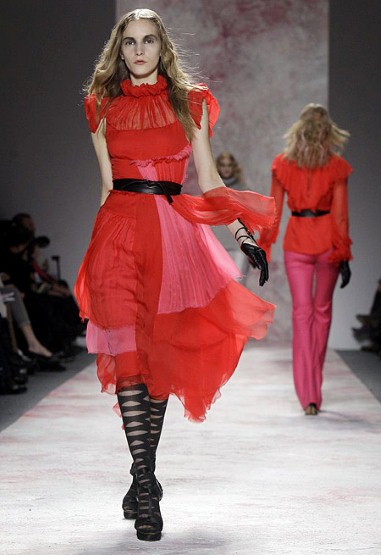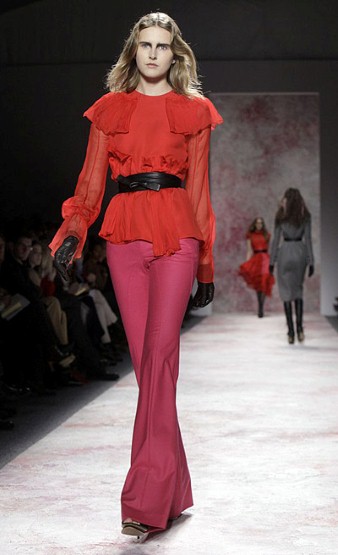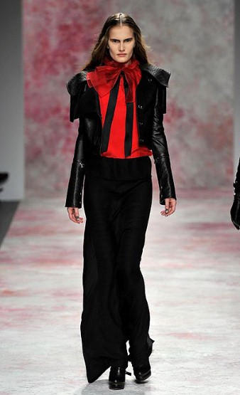 This was a totally amazing collection from Prabal Gurung. There was a strong emphasis on glamour, but the ladder effect tights worn with hot pink shoes ensured that it was fun and memorable too.  Black and white made up a good part of the collection, but with hot pinks and red also added to the equation, often as a colour clashing duo.There were so many looks that could be lifted straight from the catwalk and worn by your favourite icon of style. There was a stunning 1950s style red dress that just evoked La Dolce Vita and would be amazing on Monica Belluci or Christina Hendricks. The 1970s style pink flared trousers and sheer red blouse would be amazing on Chloe Sevigny, whilst the bullfighter inspired outfit with red blouse and black cigarette pants would be striking on Rihanna.