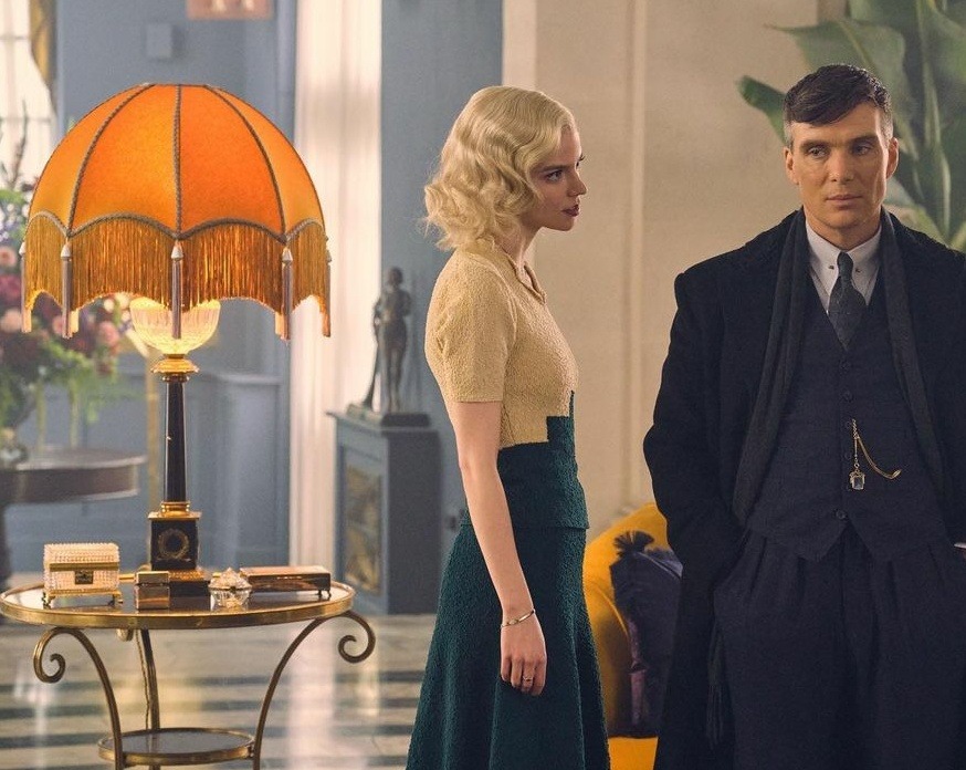 Last night saw one of the most eagerly awaited television events of the year, as the opening episode of the 6th, and final series of the iconic Peaky Blinders was aired. It was an emotional affair, as the programme said goodbye to the wonderful Aunt Poll, aka actress Helen McCrory who tragically died of cancer last year. The new series is set four years after that event, with Tommy in America to broker a drugs deal, Arthur lost in a haze of alcohol, and Polly’s son Michael vowing revenge on the person he feels is responsible for his Mother’s death, his uncle Tommy. And, In the midst of all this, there is a new and slinky queen with the hardboiled accent of the traditional gangster’s moll, ready to step into the limelight, seeming to hate Tommy Shelby, and yet with an undeniable sexual tension between them. I am talking about Gina Grey, the wife of Michael, played by the brilliant, enigmatic Anya Taylor Joy.