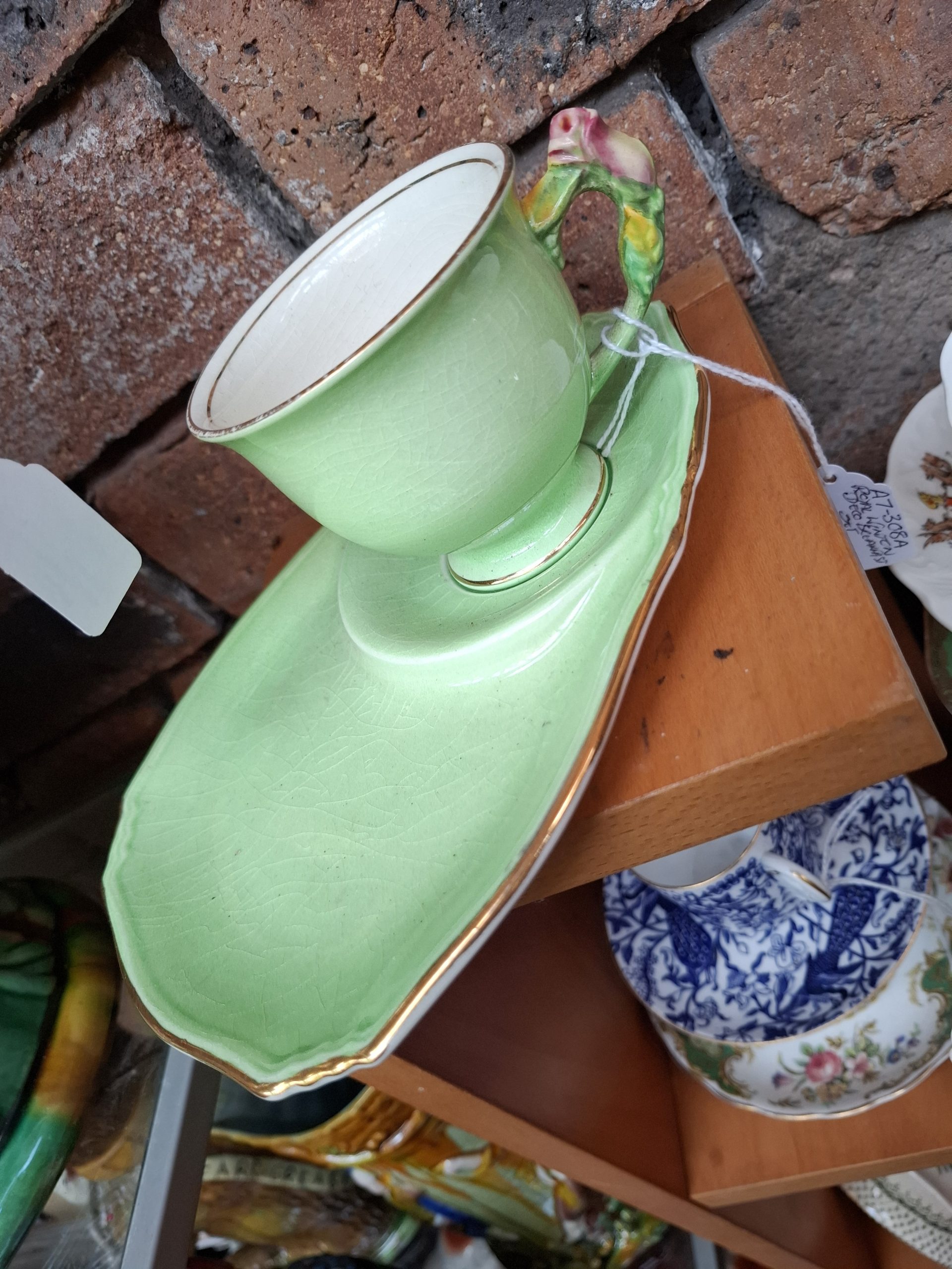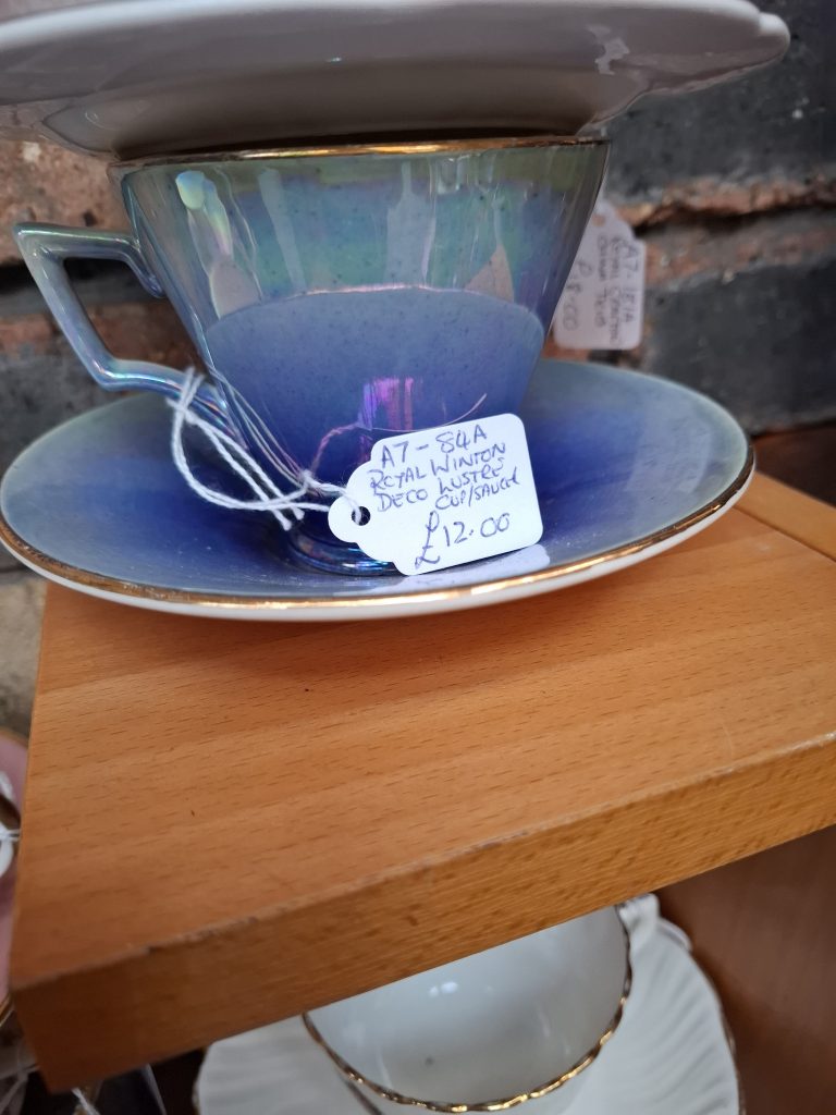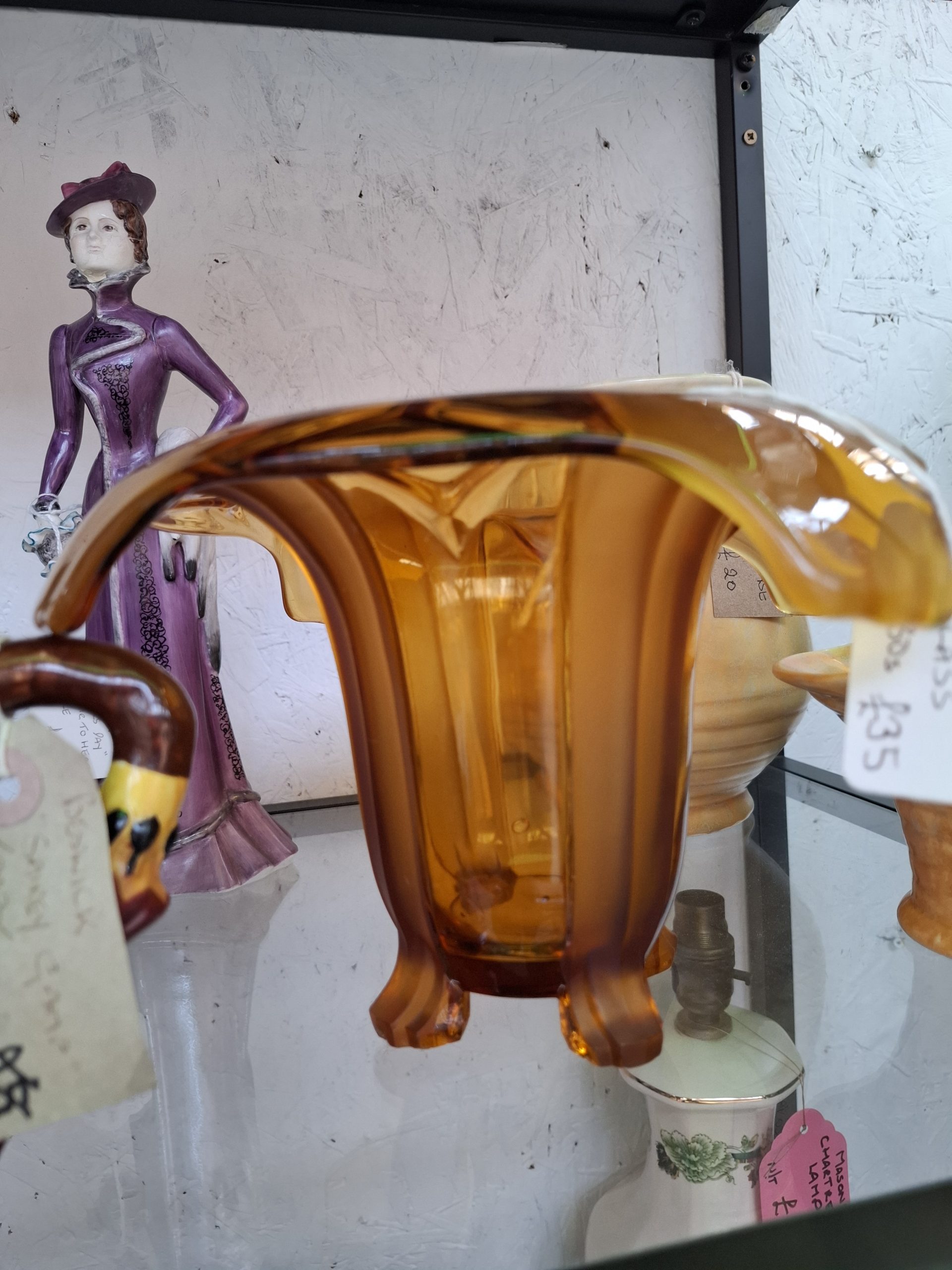 The first three pictures are items I saw, but didn’t buy in the Ironbridge antiques centre. This is one of my favourite places for sourcing art deco pieces at reasonable prices. I really like the amber glass vase, which may have been Sowerby, a key name in art deco design.