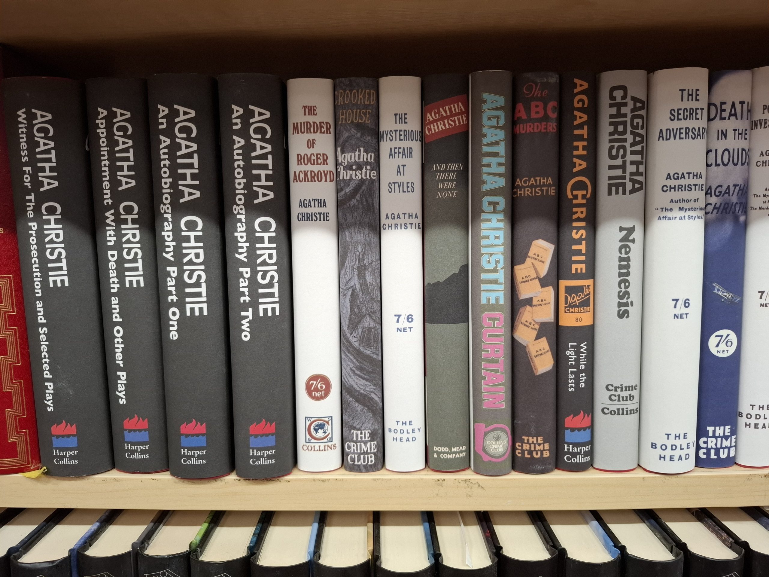 Charity shops are a brilliant way to source and improve your book collection, whether you opt for cosy crime or something else. I have found so many Agatha Christie books, as you can see below, but you can also find other golden age writers, such as Ngaio Marsh, as well as classics like the PG Wodehouse Blandings collection below.