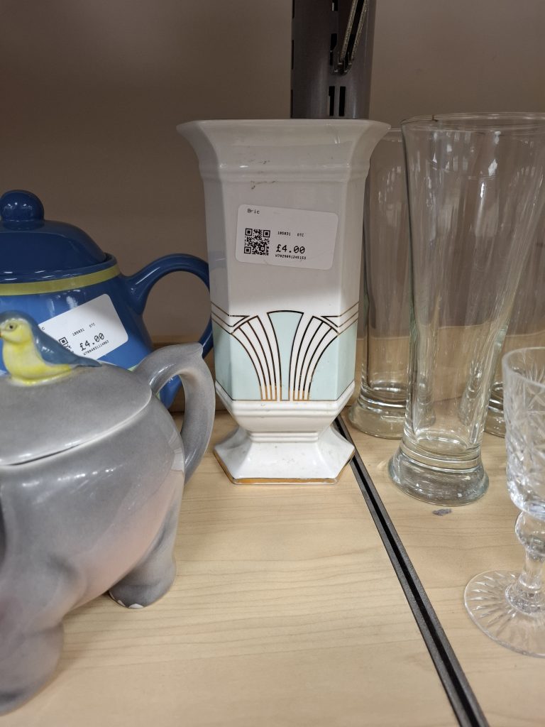 Another art deco style piece is this vase that I saw in the British Heart Foundation. It did have a markers print on the bottom but I can’t remember what it was. It is a more modern interpretation of Deco, but, for just £4, it is a definite bargain.