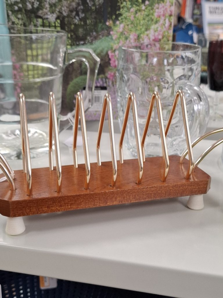 A trip to Wales at the weekend saw a first trawl around a Tenovus shop this year. Tenovus raise much needed funds for cancer research, and are a real gold mine when it comes to finding really good quality items. This weekend I saw some brilliant mid century modern pieces, including the fabulous 1960’s pyrex cups featured below. I also loved the 1950’s t0ast rack, which had a real Festival of Britain feel to it, super stylish.