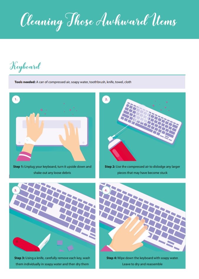 I have picked out a few of my favourite office cleaning hacks from the Real Cleaning guide, and featured these below. They show the importance of cleaning those things that can sometimes be forgotten (for instance, you have to do more than wipe your whiteboard).