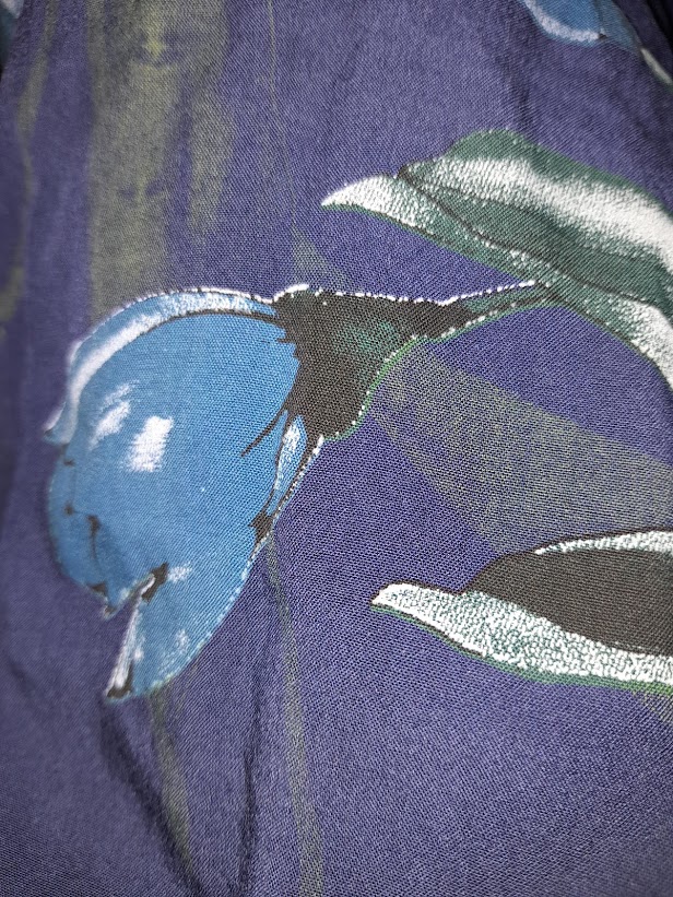 The floral print is eye catching, with flowers in a different shade of blue, and the sleeves are super pretty, with a straight design that turns into a bell shaped detailing at the elbow. The dress is one size which would fit a 10-20, and, as already mentioned, it could be worn belted to create a different look, or even left open and worn over jeans and a vest for a completely different look.