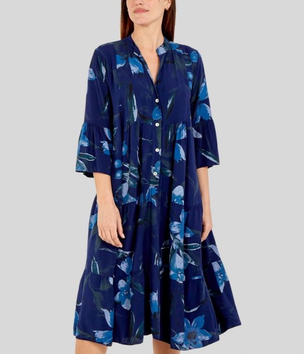 The NAVY MIDI SMOCK DRESS from High Street Outlet is a dress that you can easily wear, whatever the weather. From the Italian collection, the dress is made from 100% viscose, which makes it cool and comfortable to wear, and has a loose fit, which means it won’t cling if the day is warm, or turns warmer as it goes on. But it will also work on those cooler, Summer days, days when you want something with sleeves, or a slightly longer length, and the darks shade of the blue floral print means it will work in your wardrobe when Autumn arrives, just add some tights and a scarf and you can wear this until Winter comes.