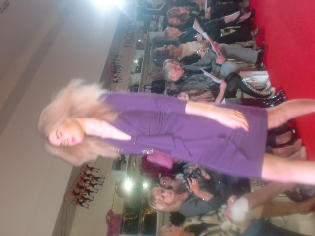 The next collection of womenswear was aptly titled Liquorice Allsorts for its fun take on brights. These were dresses that embraced cocktail style, with body skimming silk and jersey fabrics. These were real glamorous pieces, that still had that element of 70s Studio 54 styling. The blue Diane Von Furstenberg dress was a sexy nod to Kate Middleton, whilst the red halter neck from Paul Smith Black Label was a real vamp look, My favourite dress was a long-sleeved, purple Gucci dress which proved that a more covered up look could look devastatingly sexy.