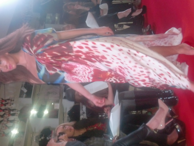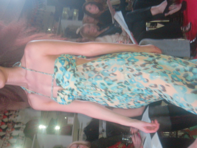 The Bare Necessities celebrated Riviera chic beachwear. A beautiful Taj Kaftan in white and silver caught my eye, whilst a blue juicy couture swimsuit bought Betty Paige to mind. Animal prints were also featured, showing that this is now a serious wardrobe staple. This animal print however, in the form of a Diane Von Furstenberg chiffon maxi dress, was a much softer and floatier version of the form.