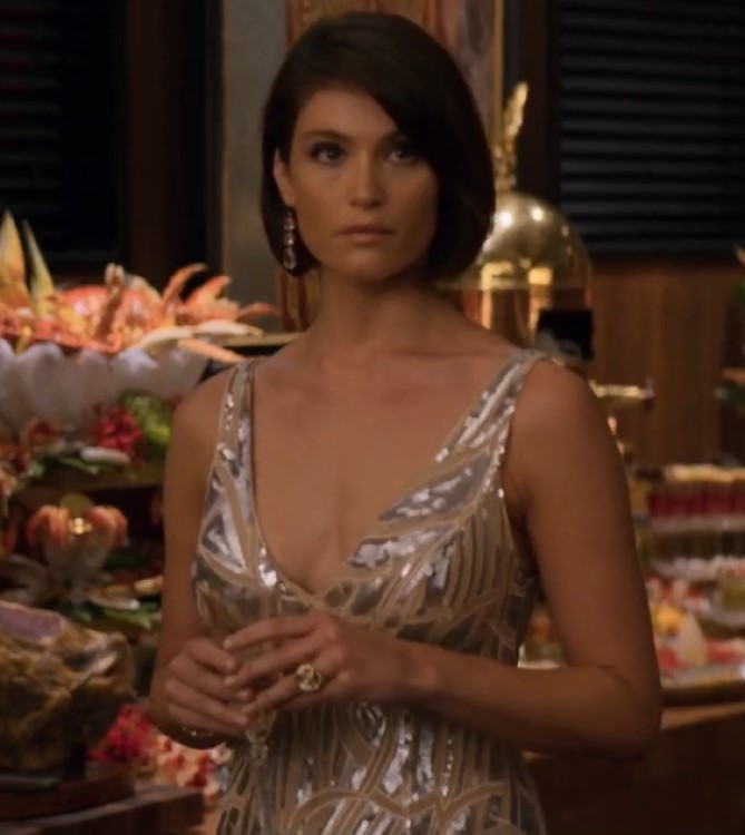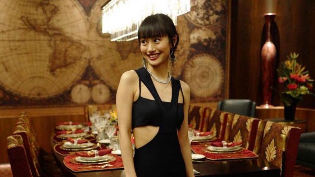 Shiori Kutsuna also looks amazing throughout as Suzi, giving off Kate Moss 1990’s vibes in her bodycon cutaway dress, another character who could be hero or villain, particularly as she is at the centre of the initial murder, as the fiancee of the first victim, the billionaire Quince (Terence Stamp) and former fiancee of another suspect Charles Cavendish (Luke Evans).