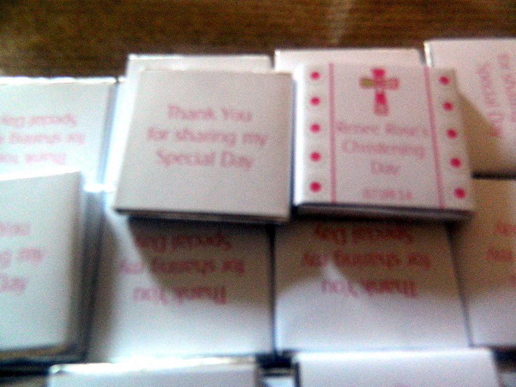 On Sunday I was honoured to be Godmother at my niece’s Christening. This little girl is very special to me, so, of course, I got her a very special gift, but I also wanted to add something to the Christening after-party. The treats from Wrapped for you proved to be just perfect. Even though I was a little late in sending through my specifications, Kerry was very helpful in making sure the treats came through in time.