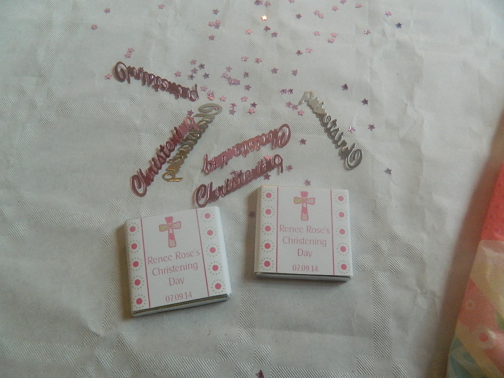 The favours were a very pretty pink and white colour. On the front there was Renee’s name and the date of the Christening, on the back there was a message – ‘thank you for sharing my special day’. Each favour was a dark chocolate with a mint flavour – they tasted absolutely delicious and were a big hit on the day, especially with the children in attendance.