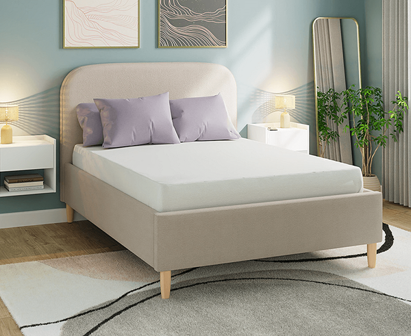 The colour of your bed frame can also affect airiness—white is best, although if you go low, colour is a secondary problem.