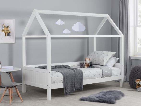For children’s bedrooms, the Birlea Home (available in white or grey) is perfect. The house-style frame is ripe for dens and playtime, and it takes a standard single mattress on the solid slatted base (open coil and pure foam ones are great).