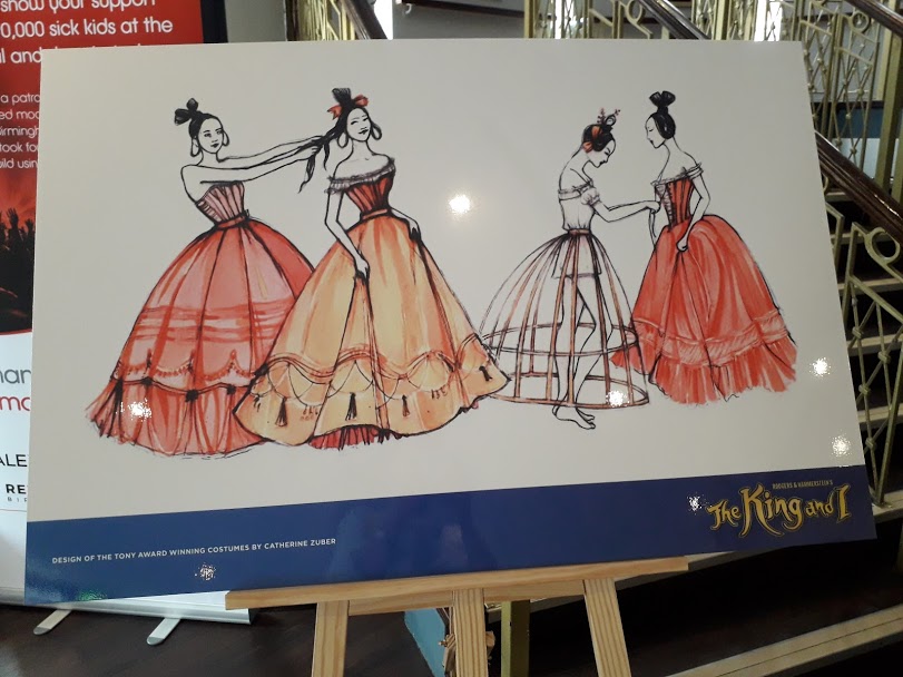 Of course, there is also the opulence of the show, and, in particular, of the ‘Shall We Dance’ dress. There was artwork showing the design of the dress, which is spectacular, weighing in at 3 stone. Annelene has to get ready in the wings for this scene as the dress will not fit into the dressing room, she has christened the dress Bertha, and says it is weighted in the hem so it dips and lifts effortlessly in the scene.