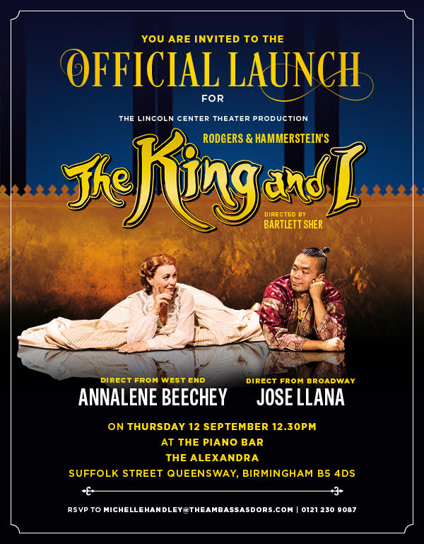 This year, The Alexandra Theatre in Birmingham will be hosting the ultimate in classic musicals when ‘The King and I’ opens in December. The show will have an all star cast, with Jose Llana reprising his Broadway role as the King, and West End star Annalene Beechey once again playing Anna. Last week I went along to the official launch, where we were treated to live performances of some of those wonderful songs in the Alex’s lovely Piano Bar, and learned a little about the show.
