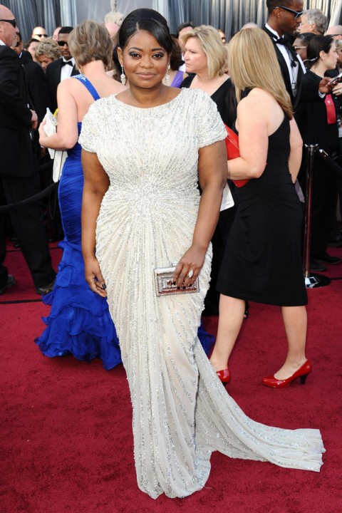 Octavia Spencer in Tadashi Shoji was just a masterclass in dressing a curvy figure for pure red carpet glamour. She looked incredible in this draped and beaded dress.