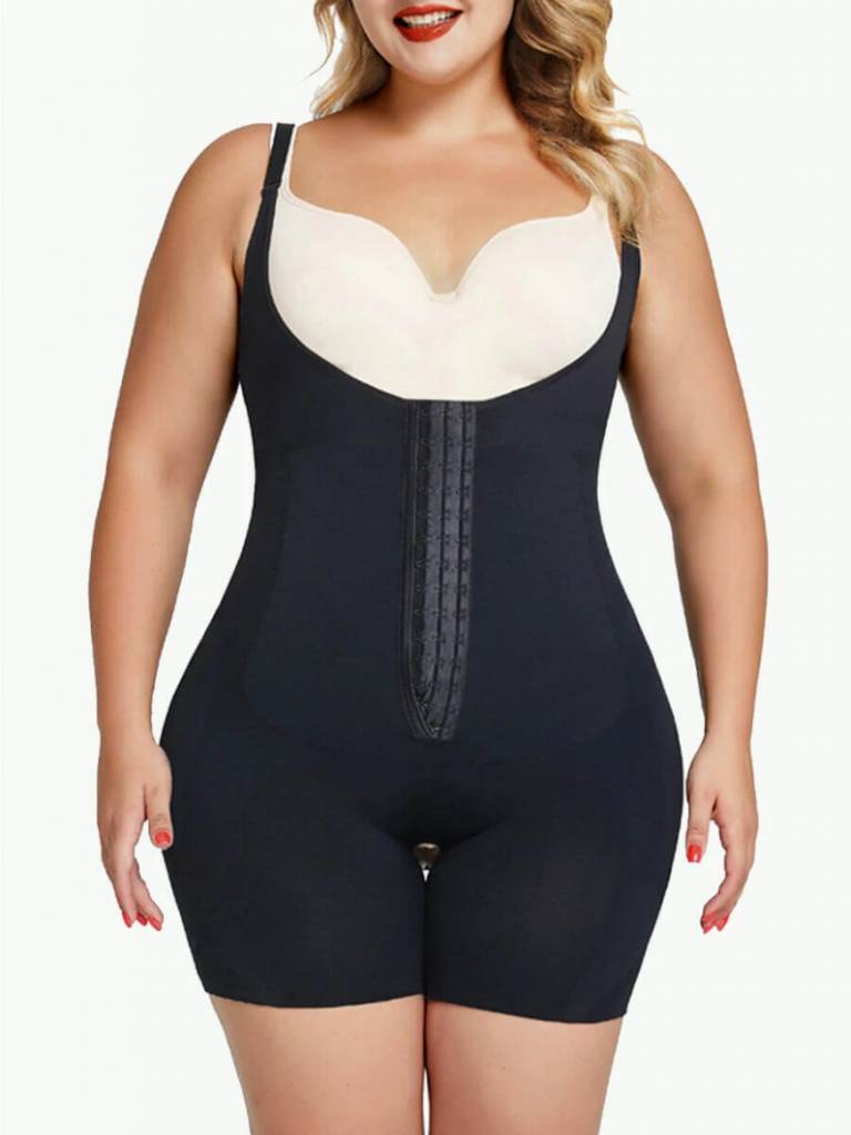 The complete body shapewear with bra (no pads) will turn muffin tops into smooth curves, reducing the appearance of cellulite. Brings a post-operative compression garment to help you shape your physique the way you want it. It includes an exposed crotch and a three-hook front clasp that makes it simple to put on and take off when using the restroom.